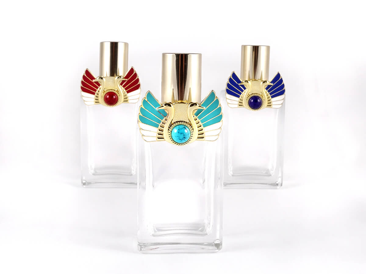 Il se compose d’une pièce en métal, partiellement émaillée et rehaussée d’une pierre fantaisie, soudée sur une bague à insérer sur col avant sertissage.