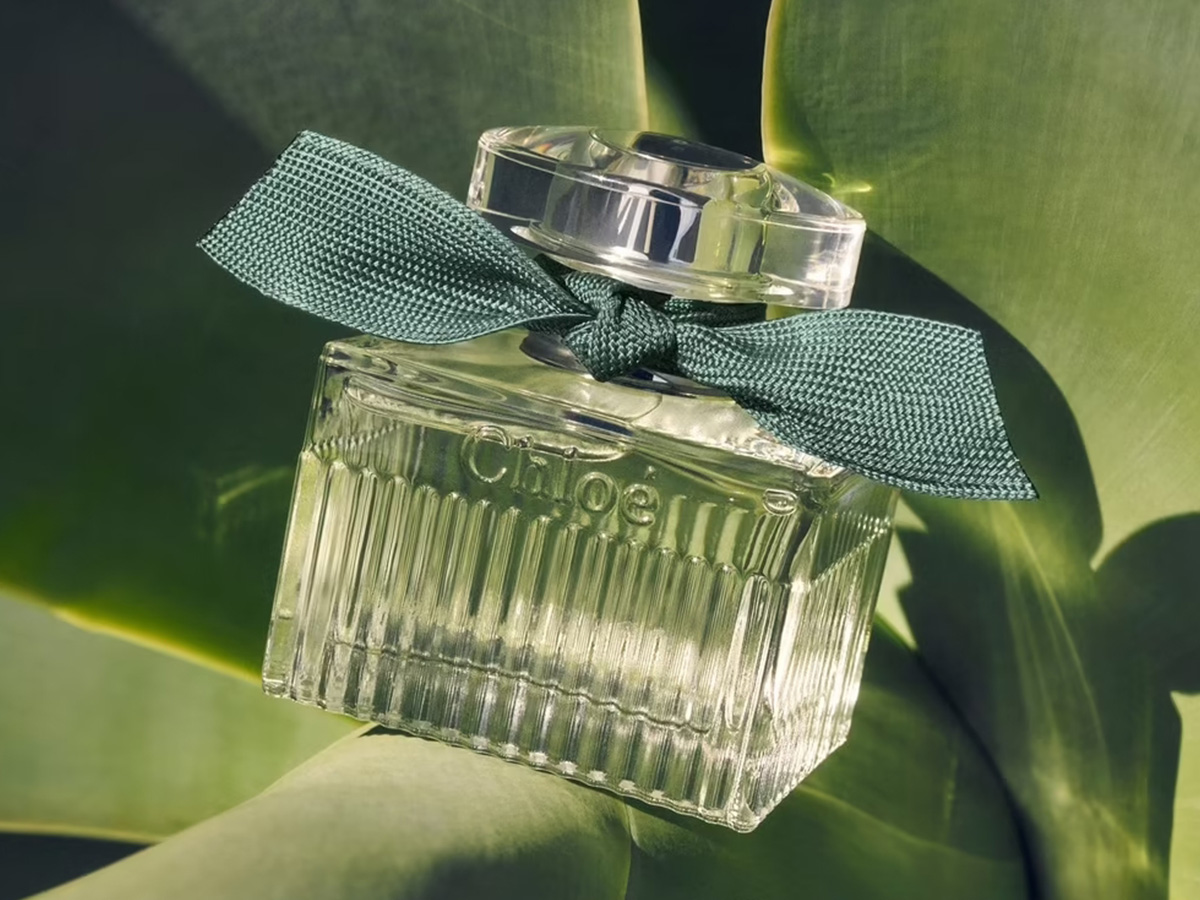 Cette dernière ligne s’habille d’un ruban vert feuillage noué au col, symbole de naturalité. 25% du verre du flacon et 40% du papier de l’étui sont issus de matériaux recyclés, tout comme le ruban produit en polyester 100% recyclé.