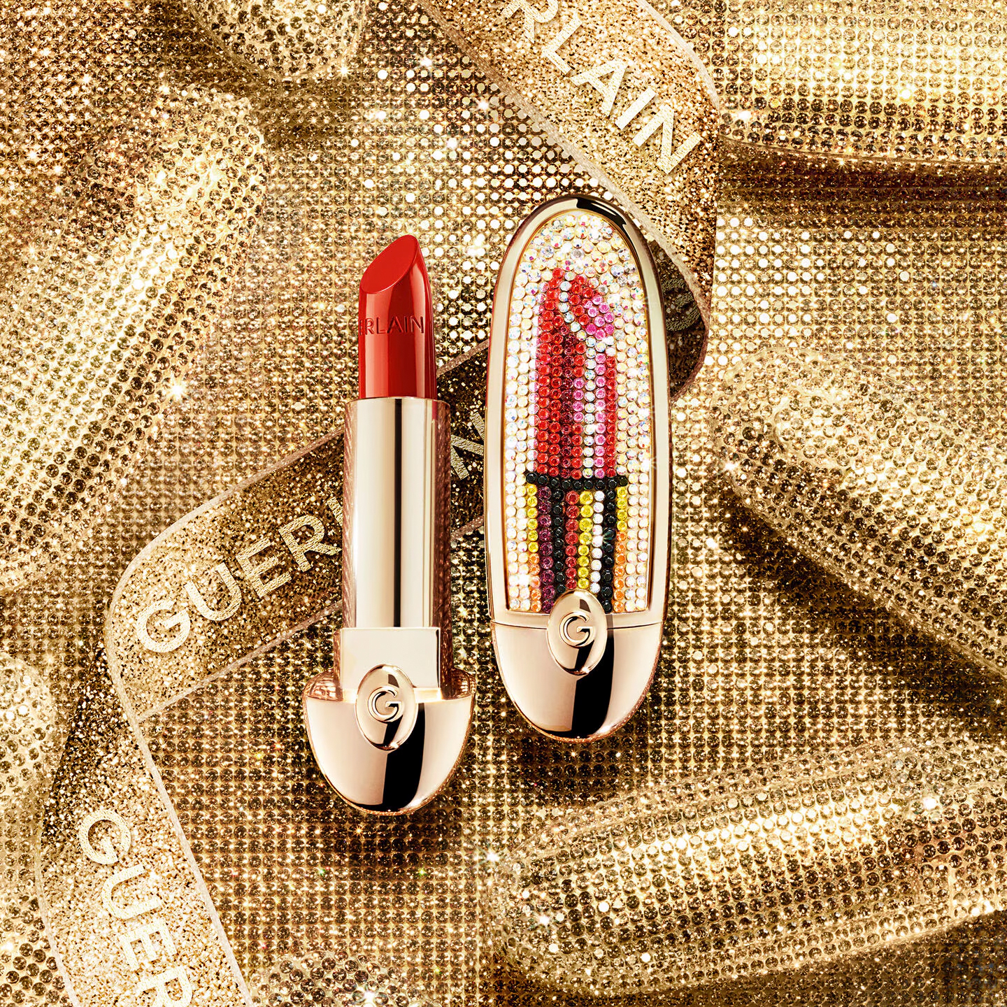 Pour illuminer les fêtes de fin d’année, Violette, Directrice de la Création du Maquillage Guerlain, et la joaillière en vogue Shourouk Rhaiem, imaginent des éditions limitées de Rouge G, Ombres G et Météorites sublimées par de précieux strass pour des collections plus étincelantes et audacieuses que jamais.