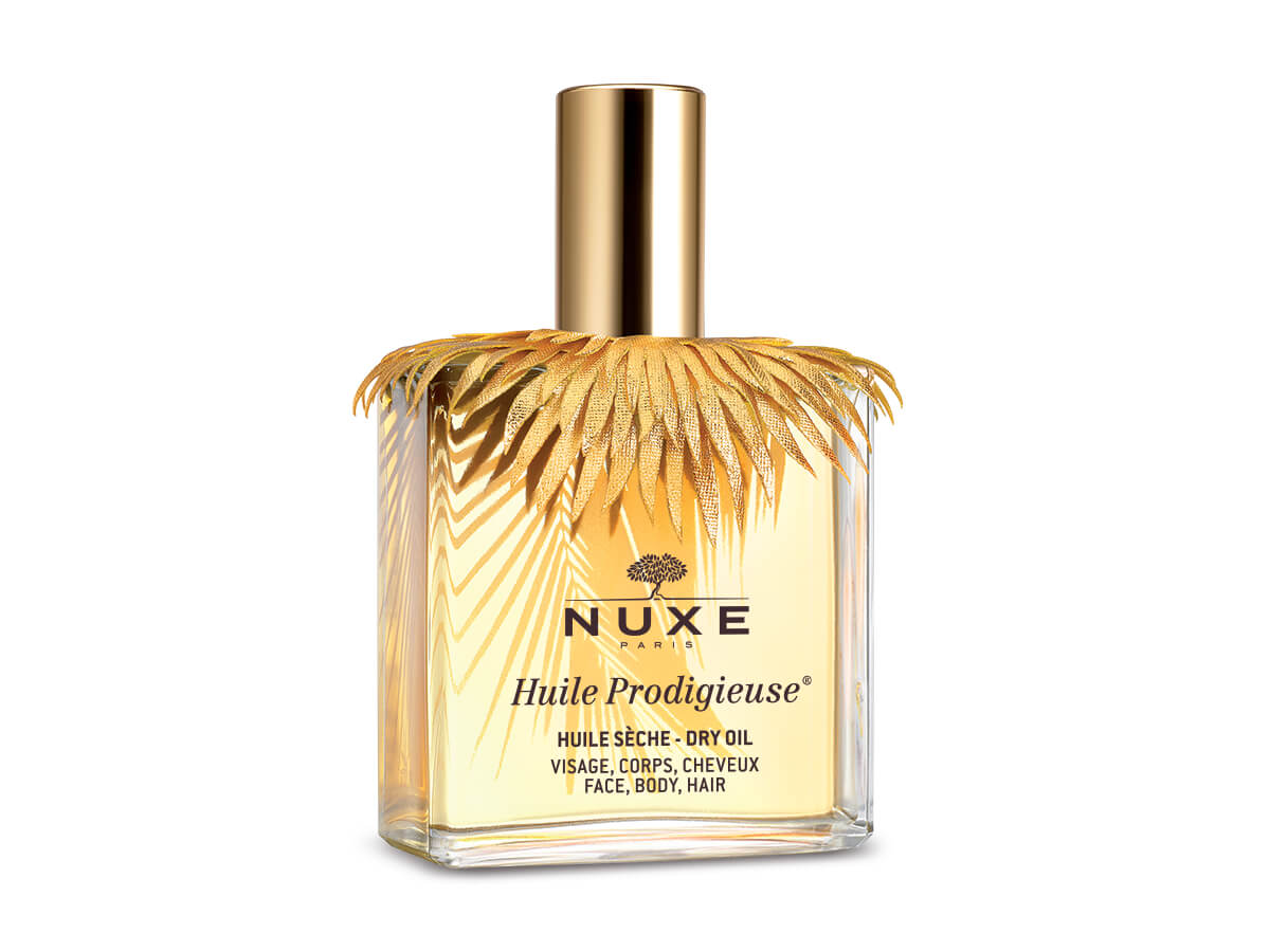 NUXE a confié à SERAM la confection de la cape en textile façon lamé or du dernier flacon de son Huile Prodigieuse®, mythique et chaque année plus innovante. Ses 3 ramées finement ouvragées au laser se superposent pour offrir un bel effet pagne, en référence à la beauté authentique et rituelle de la marque.