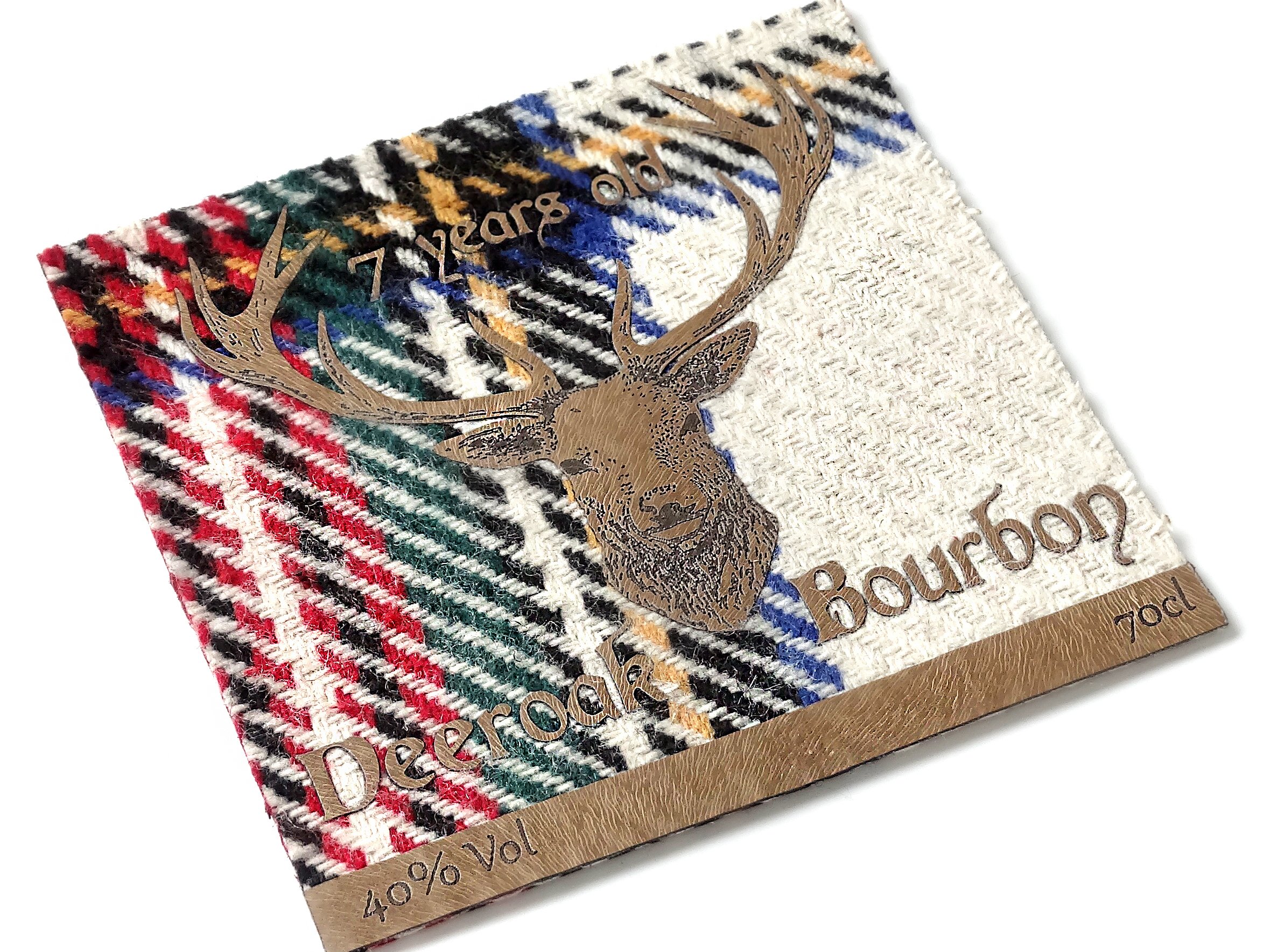 L’âme des Highlands émane de la collection WHISKY de SERAM. Habillée du tartan traditionnel, elle se décline en un col de bouteille et une flasque revêtue de son fourreau, tous deux en tweed écossais et respectivement ornés d’une plaque et d’une tête de cerf en zamac ton or. Tweed également pour le Notebook souligné d’un complexage de PU rouge effet poulain. Un sticker textile, découpé et gravé au laser, complète cet ensemble aux couleurs chaleureuses et familières.